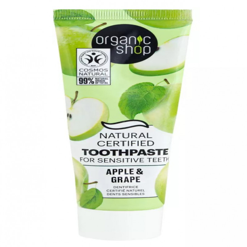معجون الأسنان الحساسة بالتفاح والعنب من أورجانيك شوب، وهو معجون أسنان لطيف للأسنان واللثة الحساسة.